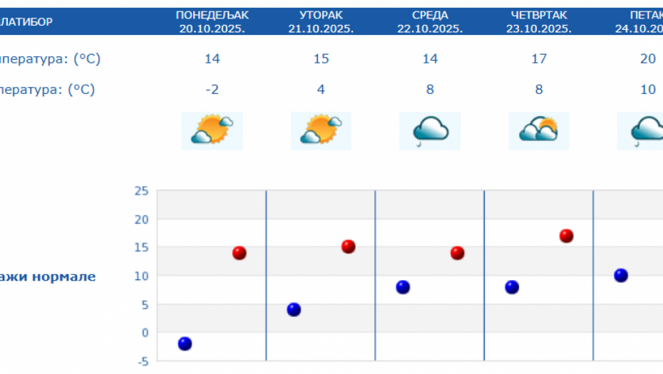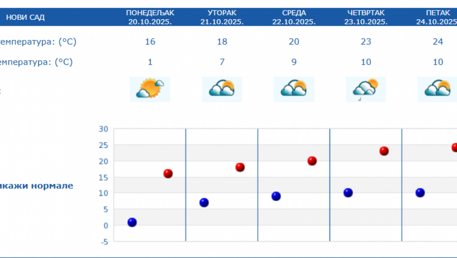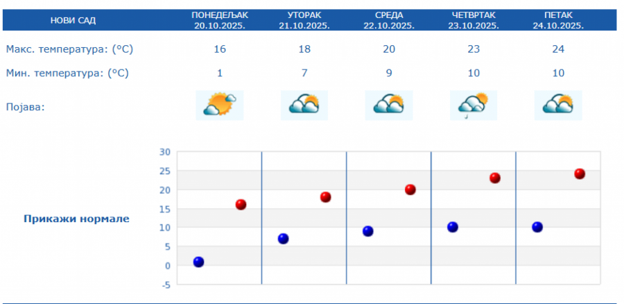 U narednih sedam dana nas očekuju velike promene: od utorka će biti hladno uz slab prizemni mraz, ali i dosta sunca. Ipak, u drugoj polovini nedelje stiže naglo naoblačenje sa kišom i pljuskovima, a od nedelje i pojačani jugoistočni vetar koji će u petak okrenuti na severozapadni.