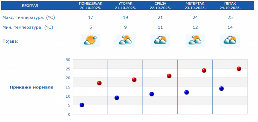 Dnevne temperature će rasti, a najtoplije će biti u četvrtak i petak sa čak 22 do 24 stepena!