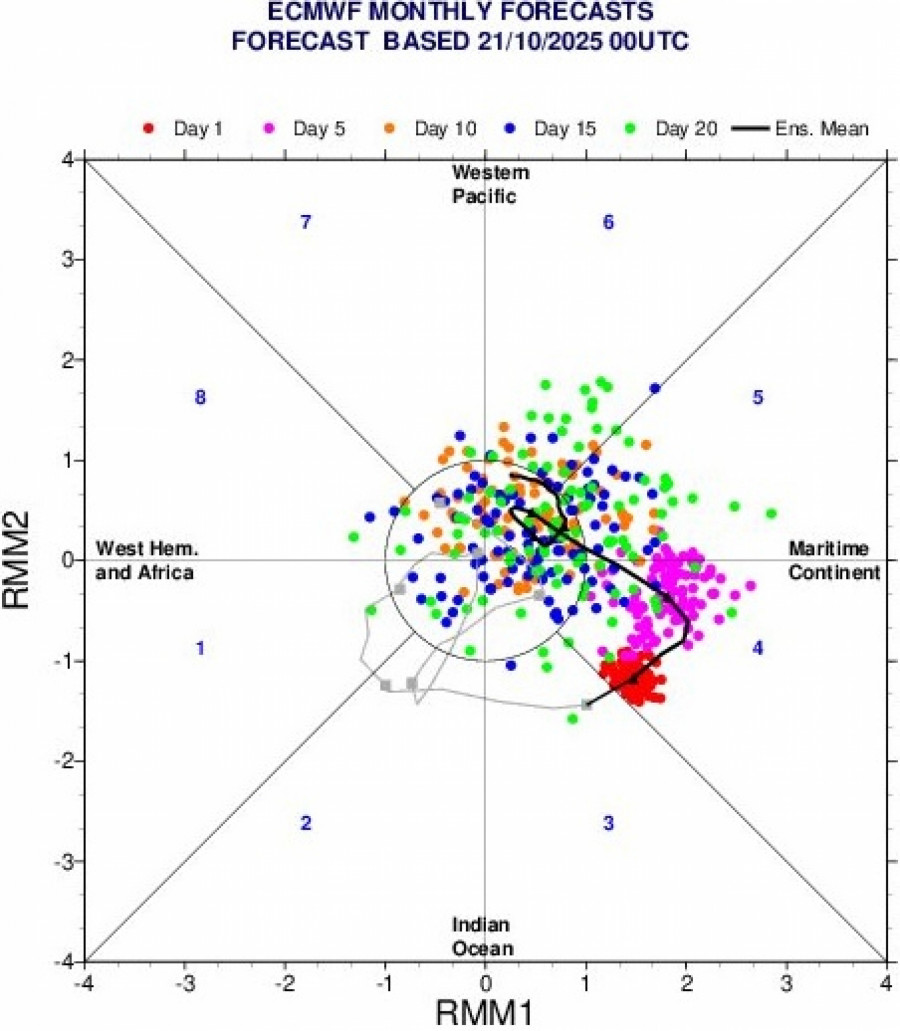 Za sada još uvek ostaje termin za prve snežne padavine u Beogradu oko 24. novembra, mada MJO indeks ga prognozira i ranije, zaključuje Ristić.