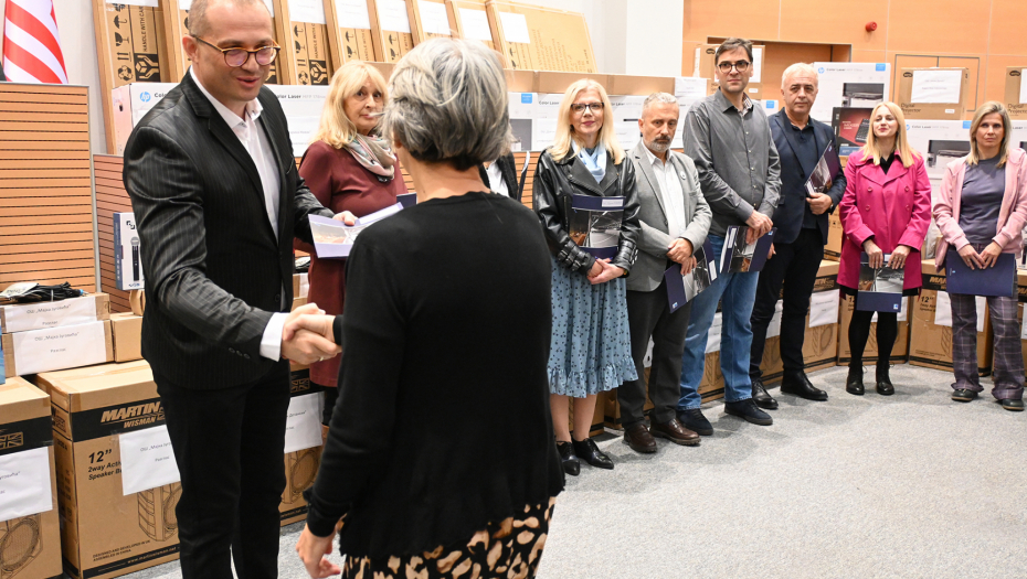 Direktori su odabrali, a 35 škola i njihovi đaci ove godine dobili su 9 interaktivnih tabli, 16 projektora, 16 multifunkcionalnih štampača, 7 računara sa monitorima, 7 razglasa i jedan video bim.