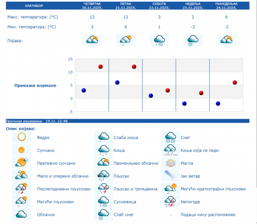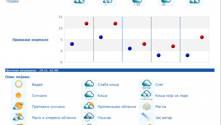 Od petka se očekuje povećanje oblačnosti i pad temperature, u planinskim predelima jugozapadne Srbije moguć je sneg. Toplije vreme očekuje se sledeće nedelje, ali uz prolazna naoblačenja sa kišom.