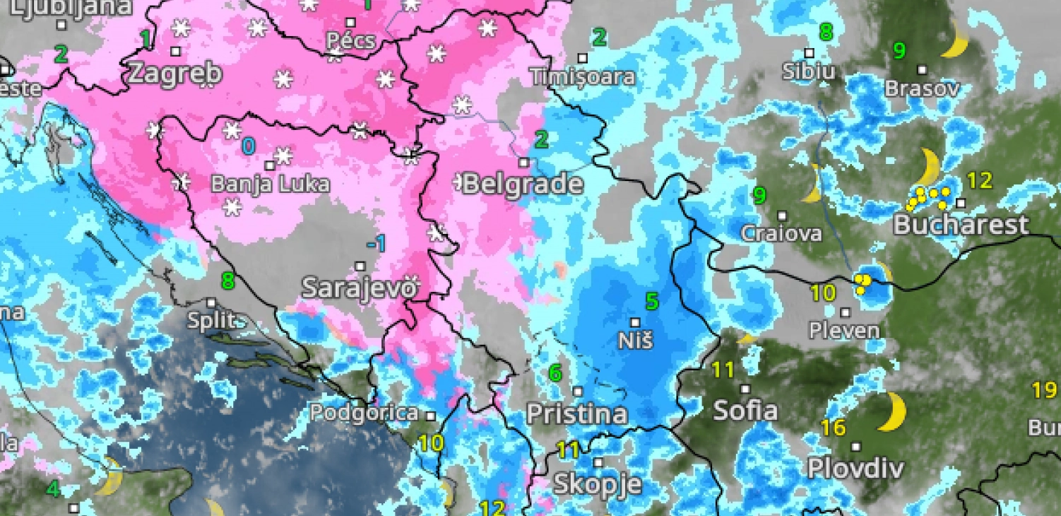 - Danas hladan front prelazi Alpe, a ispred njega se pokrenulo južno strujanje te je posebno na istoku regiona otoplilo. Na zapadu već ima više oblaka i tamo će biti sve oblačnije i nestabilnije uz prolaznu kišu ili pljusak. U toku noći ka petku zapad regiona će zahvatiti jače pogoršanje sa kišom, koja će prvo u Gorskom Kotaru, a zatim i u ostalim delovima Hrvatske i zapadne BiH uključujući i nizije prelaziti u sneg - kaže Čubrilo.