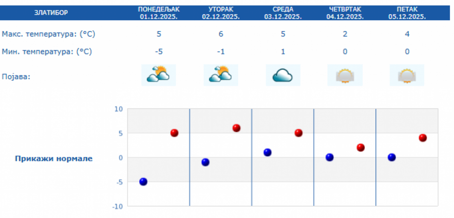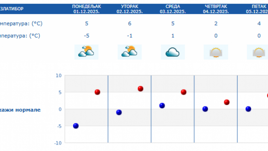 Od petka se ponovo u većini krajeva zemlje očekuju slabe, sporadične padavine, uglavnom u vidu kiše, a slab sneg se očekuje samo na visokim planinama.