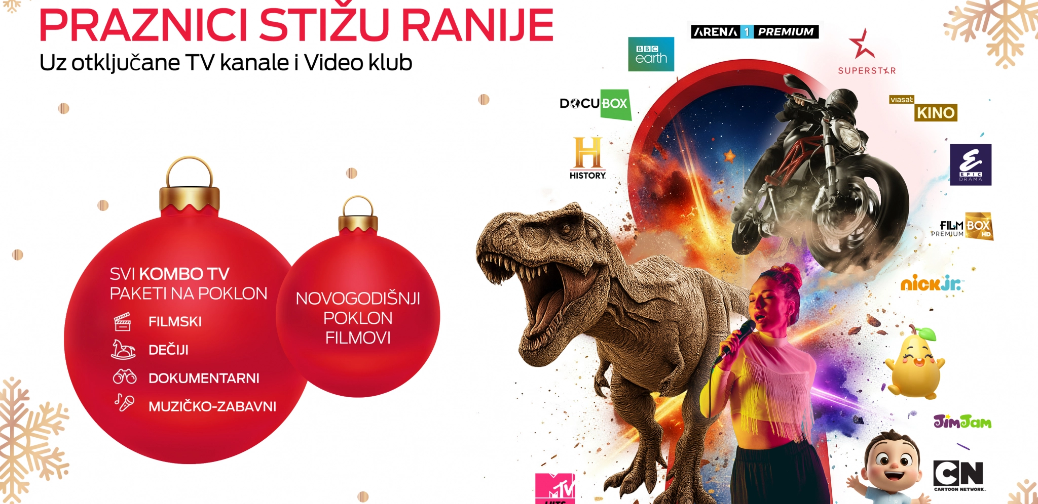 Praznična sezona i ove godine stiže ranije za sve televizijske korisnike Telekom Srbija servisa – Iris TV, Super TV, MOVE, m:SAT TV i Antena Plus. U duhu tradicije da svojim korisnicima ulepša kraj godine, Telekom Srbija je pripremio poseban poklon – širok izbor dodatnih TV kanala i bogatog sadržaja iz Video kluba, potpuno otključanih i dostupnih do 15. januara 2026. godine.