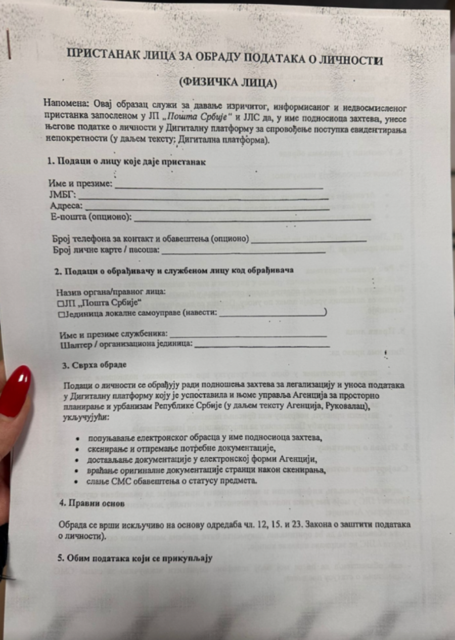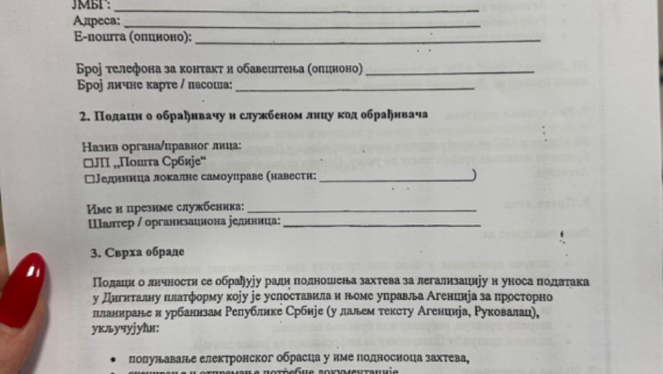 Reporteri Alo! pre nekoliko dana su posetili Glavnu poštu u Takovskoj ulici u Beogradu i tom prilikom fotografisali obrazac koji je potrebno da popune građani koji se prijavljuju za legalizaciju objekta