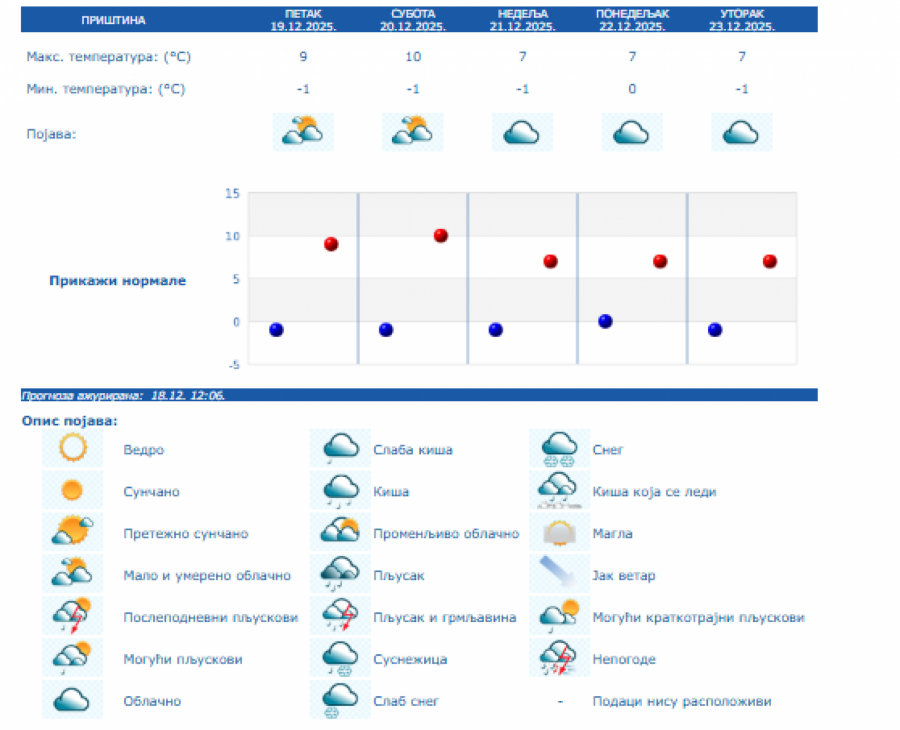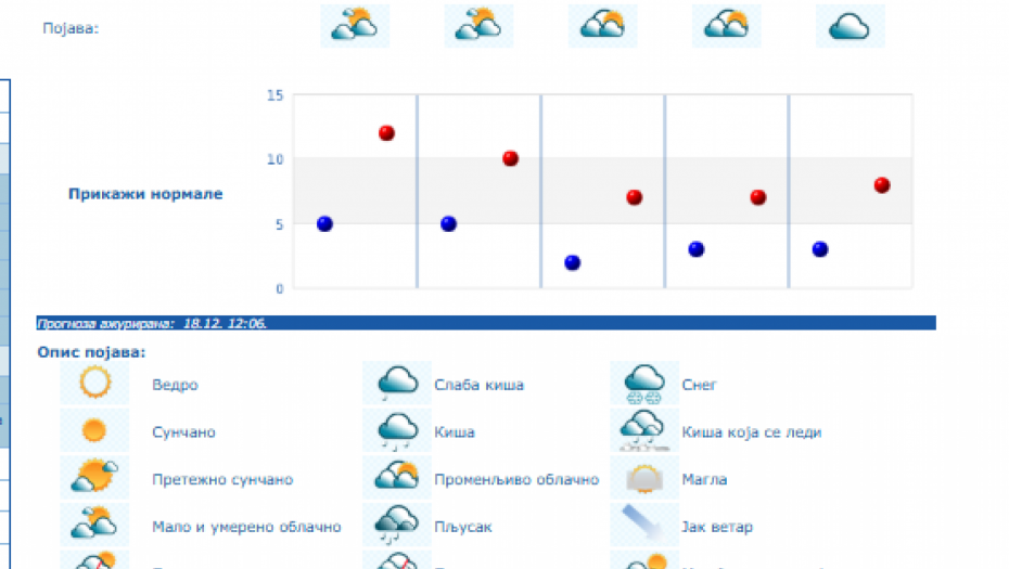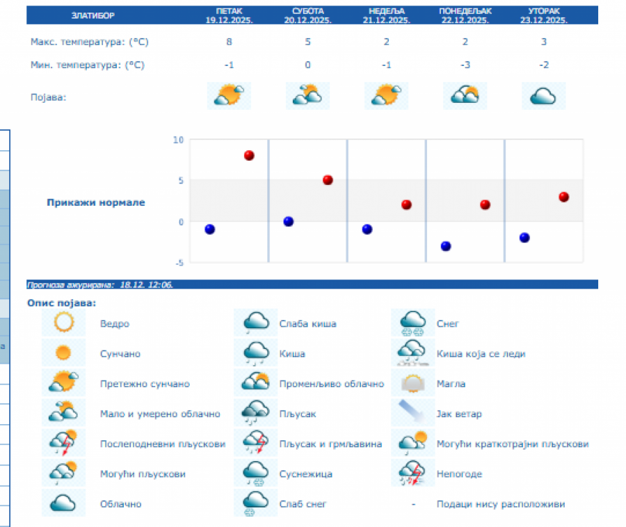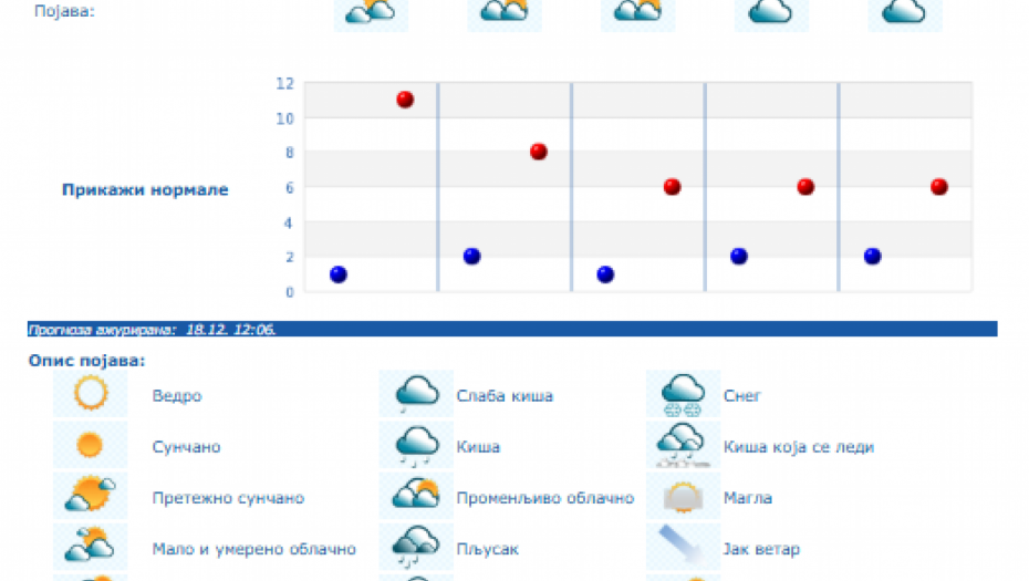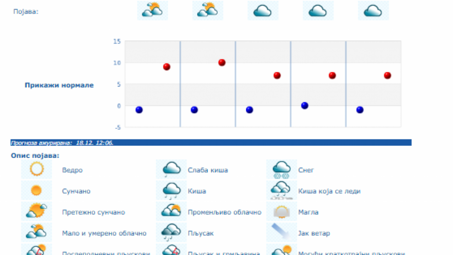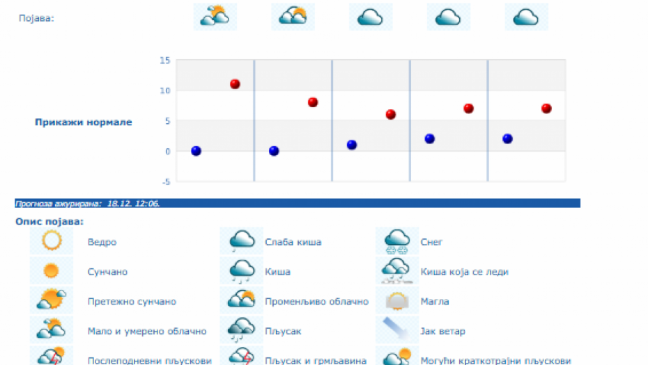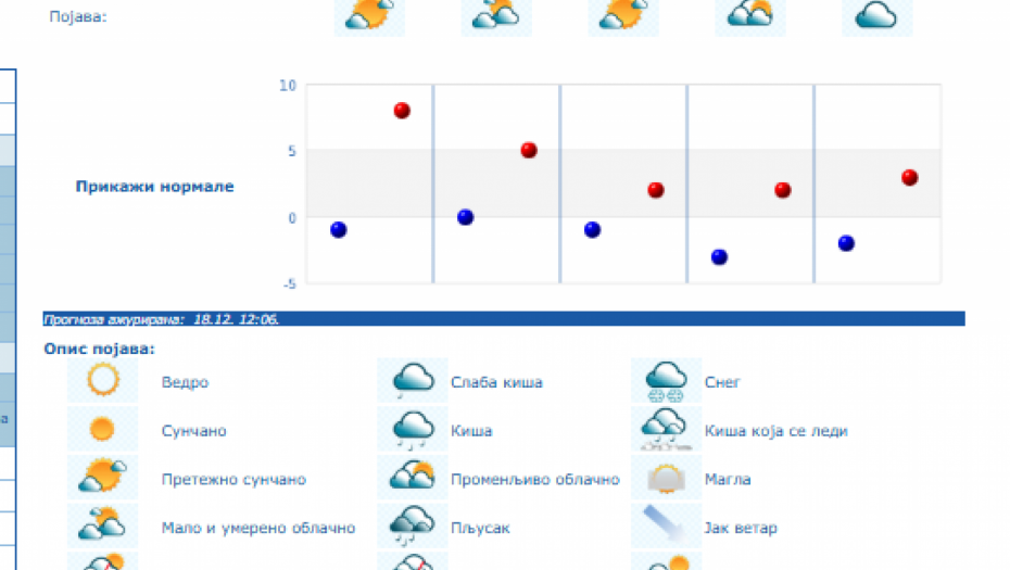 Najniža dnevna temperatura biće od minus četiri do pet, a najviša od osam do 13 stepeni.