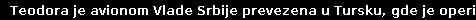 Zahvaljuje se Danici Lukić, zamenici direktora Sektora za ostvarivanje zdravstvene zaštite u inostranstvu u RFZO i Sanji Radojević Škodrić, direktorki RFZO, koje su, kako kaže, izašle u susret i nakon čijeg zalaganja je u roku od nekoliko dana Teodora otišla u Tursku avionom Vlade.