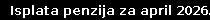 Republički fond za penzijsko i invalidsko osiguranje obaveštava svoje korisnike o datumima isplate penzija i ostalih prava iz penzijskog i invalidskog osiguranja za april 2026. godine: