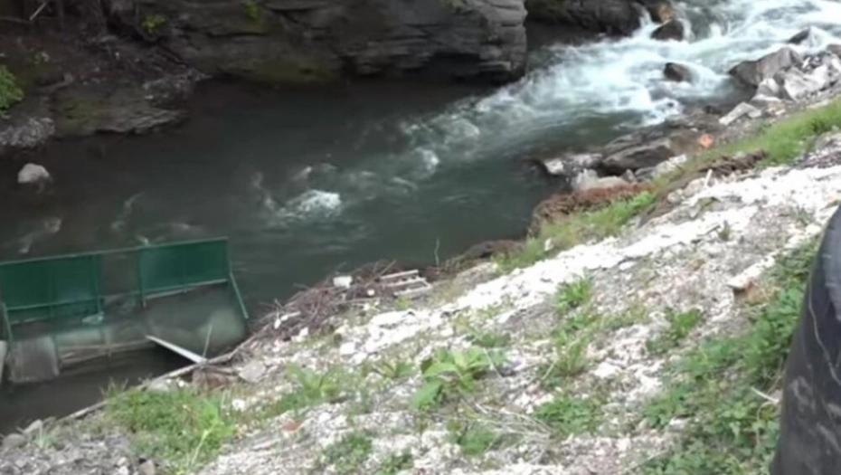 S druge strane obale, huligani su u reku odgurali čitavo autobusko stajalište.