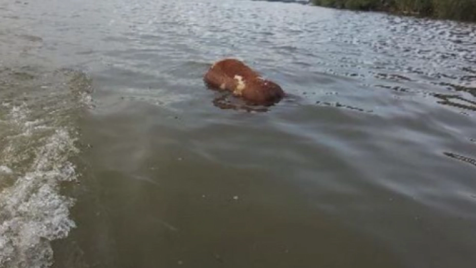Opis slike je sledeći: "Krava pluta Dunavom kod Višnjice".