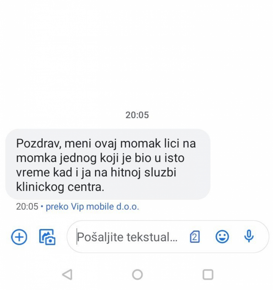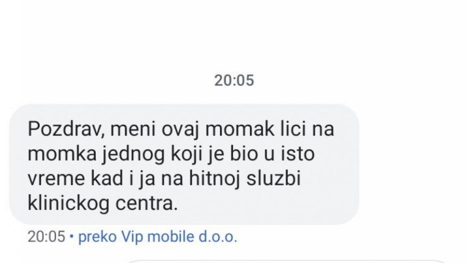 "Pozdrav meni ovaj momak liči na jednog momka koji je bio u isto vreme kada i ja na hitnoj službi u Kliničkom centru"