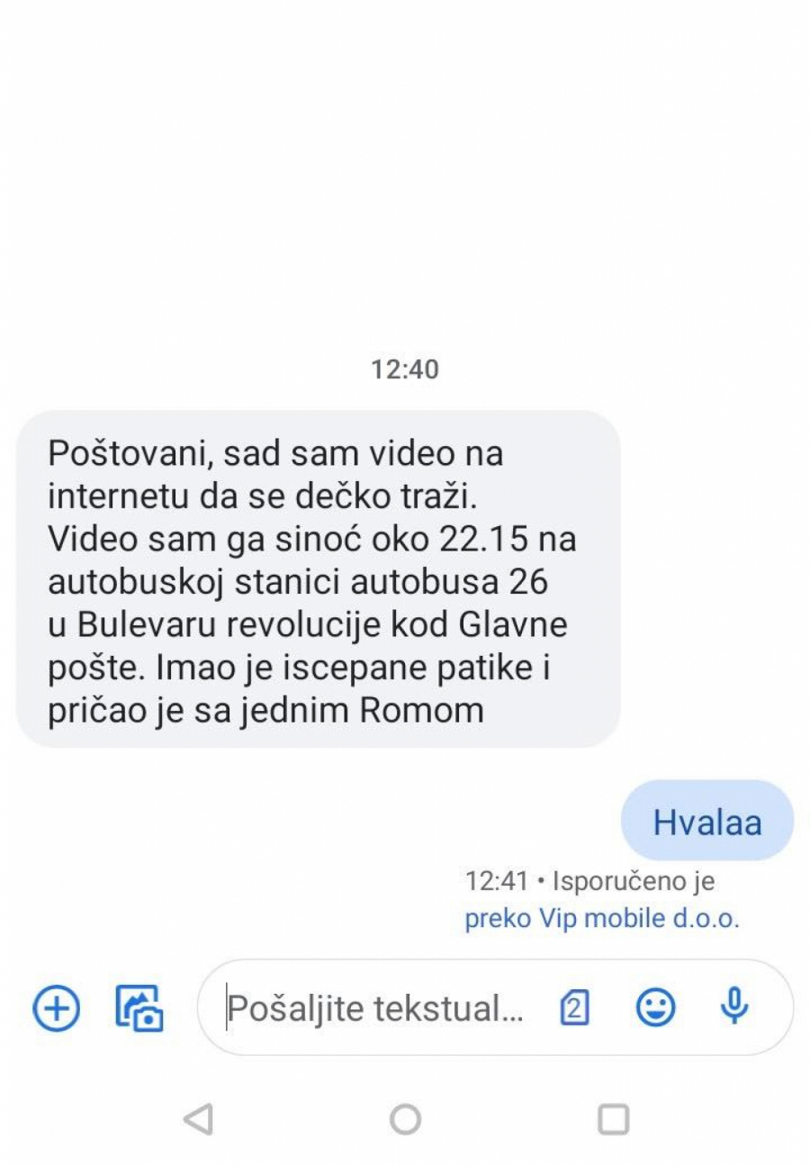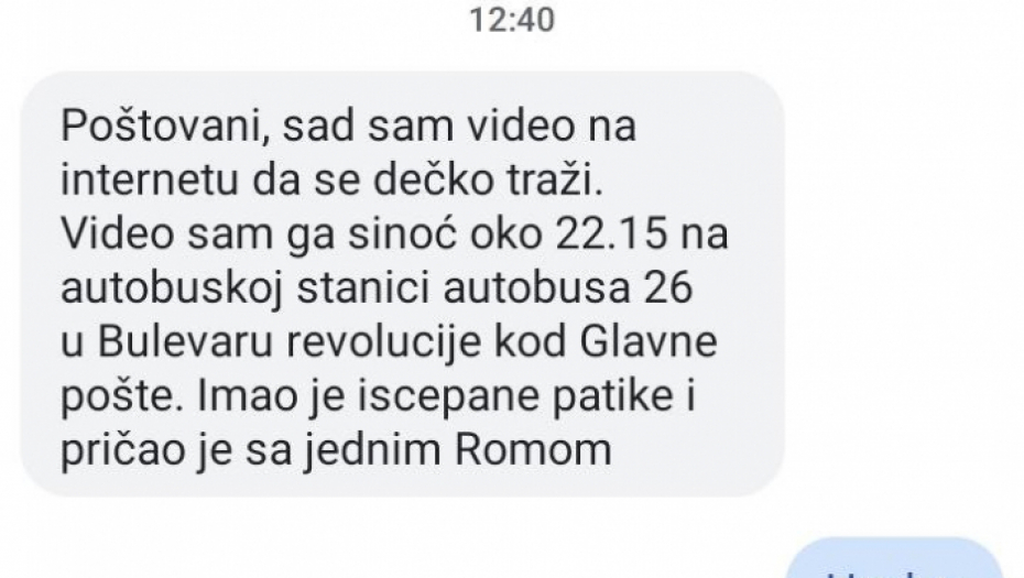 Podsećamo vas da obavezno pozovete policiju ukoliko uočite Bojana, ali i kontaktirate njegovu majku na broj telefona 060-473-85-33.