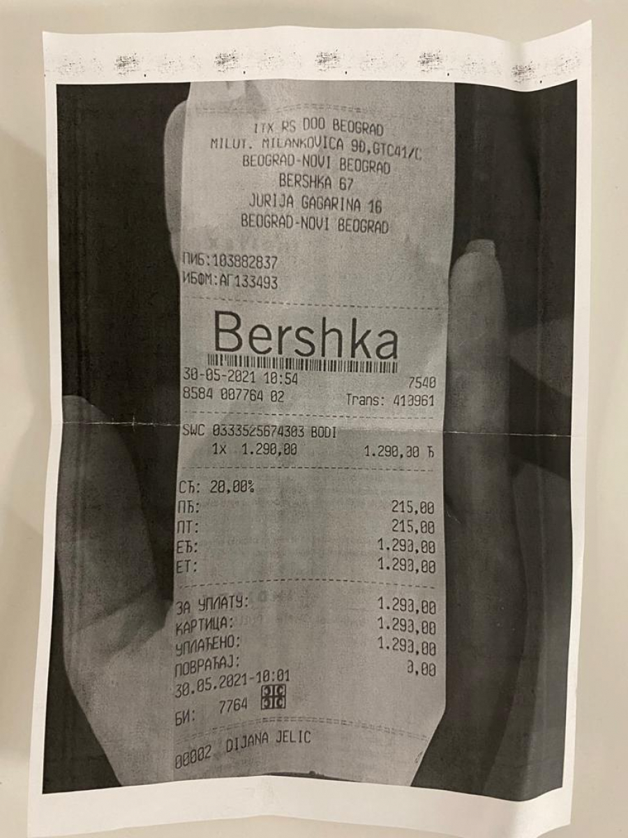 - Došla sam do kase i objasnila o čemu se radi, da sam došla da zamenim bodi koji sam dobila na poklon zbog veličine jer mi je veliki. Međutim, neki dečko, za kog pretpostavljam da je menadžer lokala, mi je rekao da ne može bez računa, što je u redu. Nakon toga, kada sam krenula, devojka na kasi me je zaustavila i rekla da mi drugarice pošalju fotografiju računa na Viber, da ga odštampam i to donesem kao dokaz – objašnjava naša sagovornica.