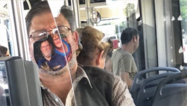 Naime, na internetu je osvanula objava koja je oduševila javnost, a na kojoj se može uočiti stariji gospodin koji poštuje epidemiološke mere u autobusu na liniji 89 i nosi zaštitnu masku, ali to nije sve – na njoj je ištampana njegova fotografija u zagrljaju sa ženom.