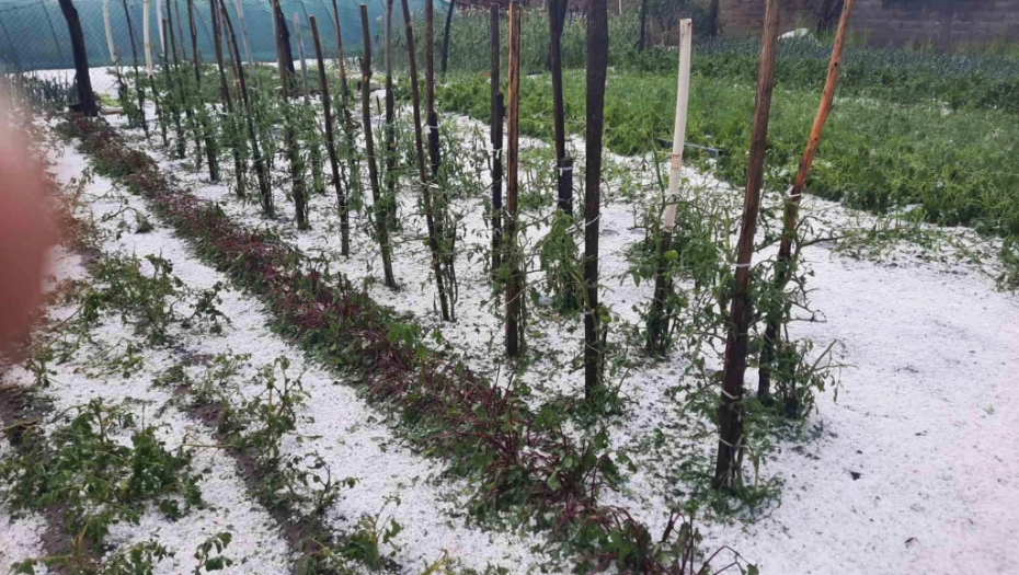 Prema rečima našeg reportera, koji se zatekao na licu mesta, jak grad je pogodio useve i sadnice u Donjem Petrovcu, a meštani su zabrinuti zbog uništenog roda.