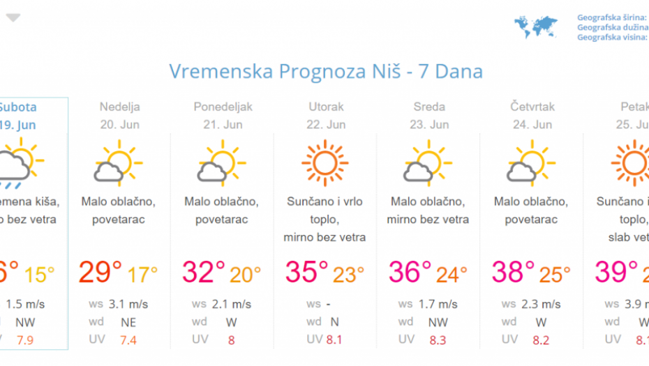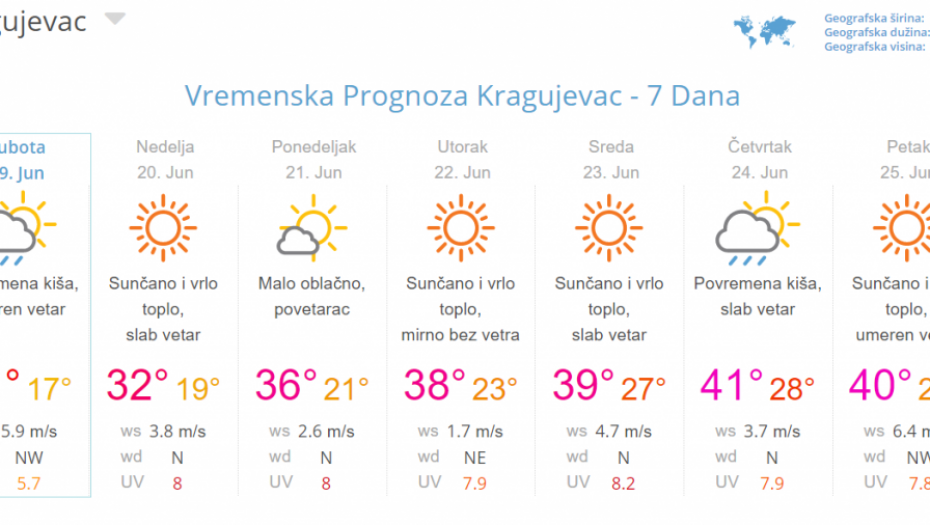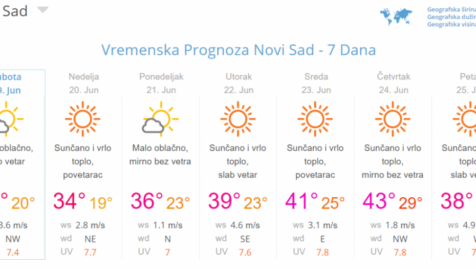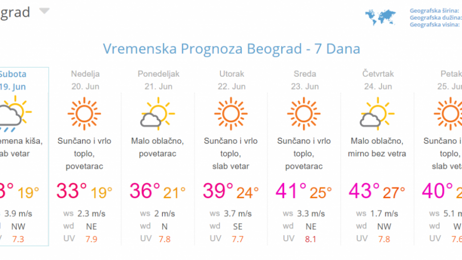 Leto i kalendarski stiže za dva dana, a sa njim i prvi tropski talas ove godine. U Srbiji sledeće nedelje i do 37-38 stepeni, a u regionu i preko 40 - napisao je na svom Fejsbuk profilu meteorolog Đorđe Đurić.