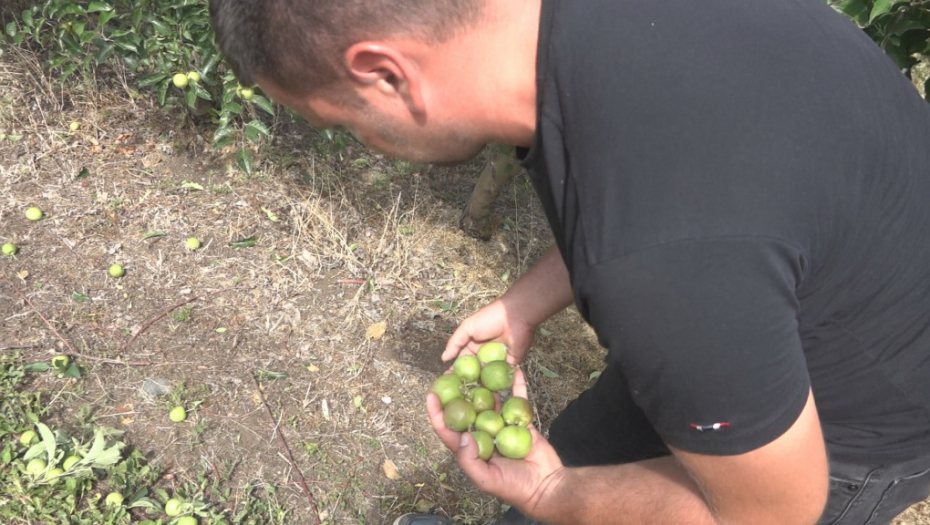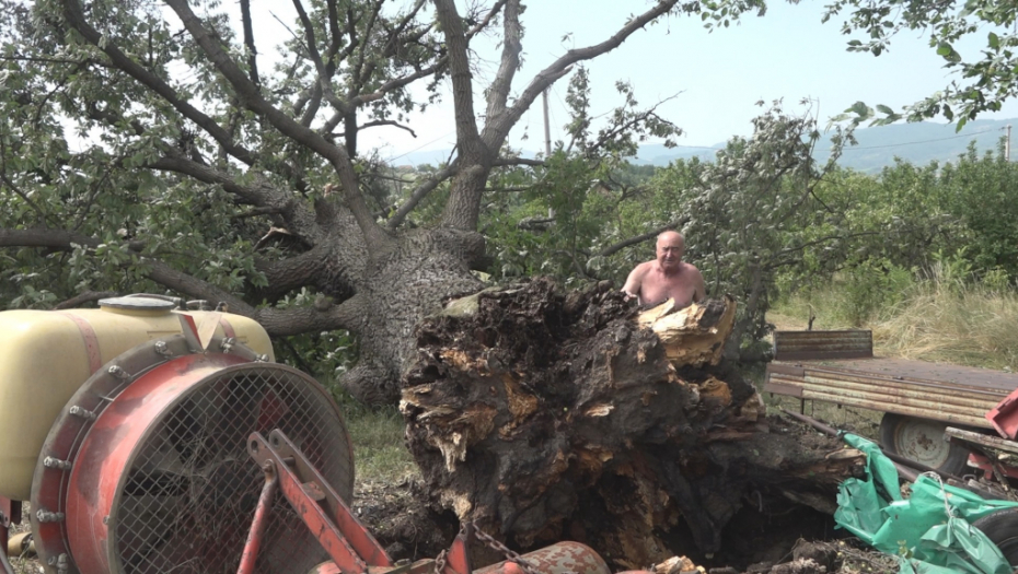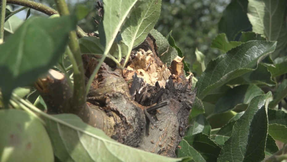 - Oluja, grad i obilne padavine napravile su ogromne štete u našim voćnjacima, jabuke su najgore prošle. Vetar je lomio čitava stabla i izvaljivao iz zemlje. Ono što je ostalo sve je gradobitna roba sto odsto, nema prve klase, a verovatno ni druge. Sve ćemo morati dati u industriju, kazane za rakiju i pekmeze. Ono što je najgore u ovoj situaciji je da dok nas nije zadesilo nevreme, rod je bio kao srećnih godina i kvalitet je bio perfektan. U ovo sada vreme jabuka je dostigla do 45 milimetara veličine, što znači da bi do berbe opušteno mogla dostići veličinu preko 70 milimetara u plusu što je kalibar za inostrano tržište. Rod je bio fenomenalan, urađeno je sve što treba, ali ovo je bila viša sila iz neba, protiv nje se ne može - kaže Ivan Topalović iz sela Miokovci.