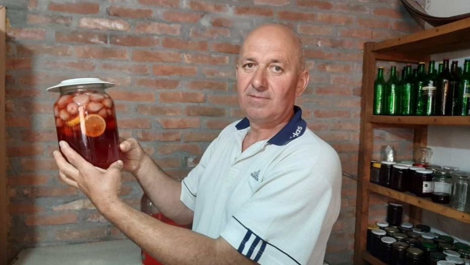 - U staklenu posudu stavim 500 grama meda ili šećera i jedan kilogram dobro zrelih jagoda. Tako pripremljena tegla izloži se suncu par dana a potom dodam još i 1,5 litar rakije lozovače. Par dana posle toga stavi se i dve kesice vanilinog šećera i jedan limun izrezan na krugove. Sve to ostane izloženo suncu još par dana dok jagode totalno ne pobele, odnosno dok cela smesa ne postane obojena kao jagoda - kaže Dragan.