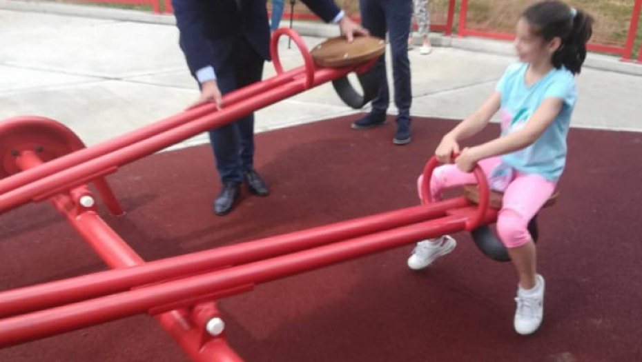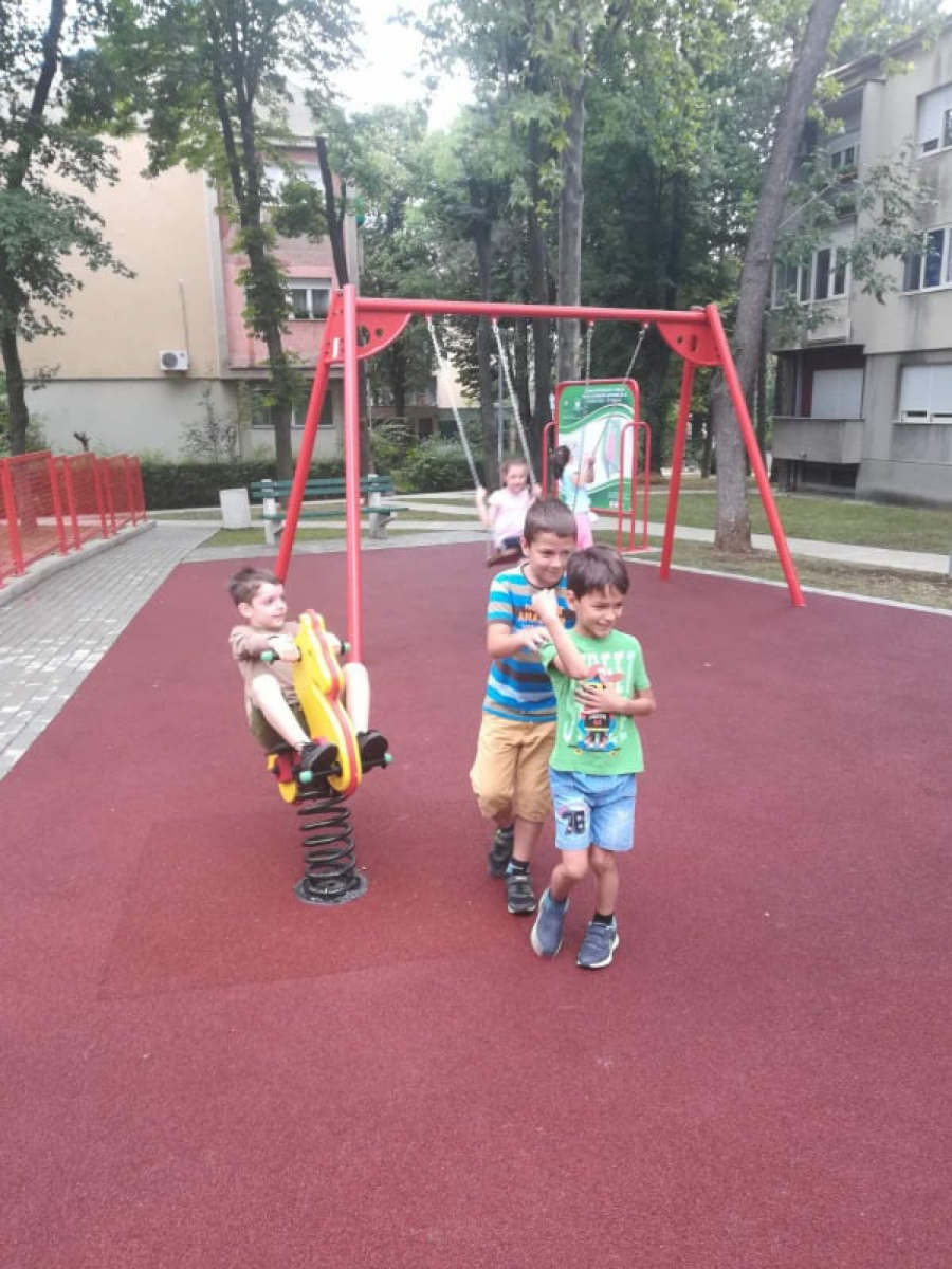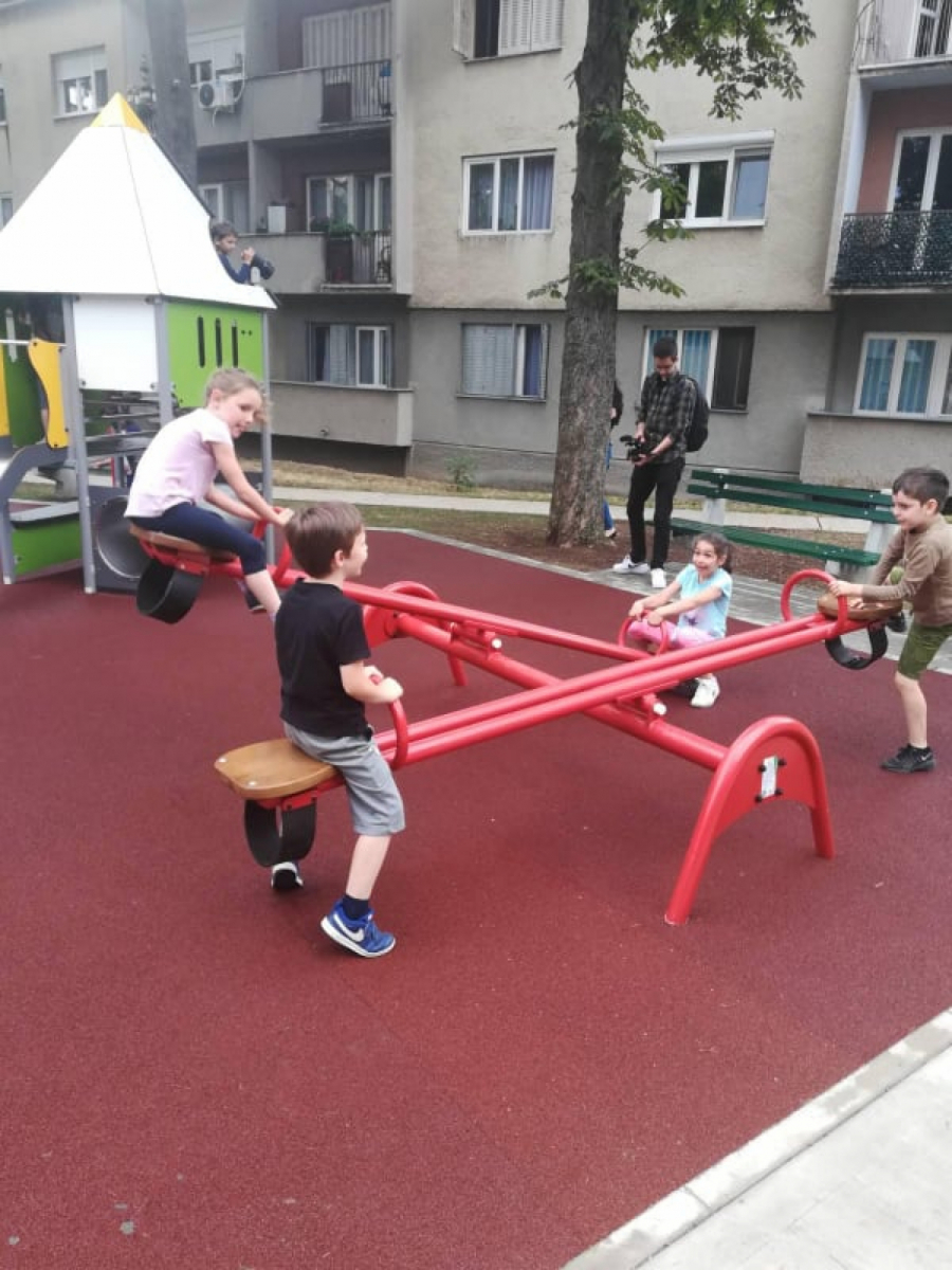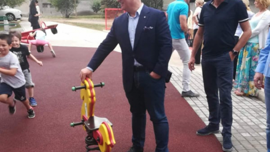 "Igralište ima stazu koja štiti decu od istrčavanja na ulicu, zaista sam srećan što je nase zelenilo ovladalo ovom tehnikom i sve što vidite iza nas je proizvedeno u Srbiji", rekao je Vesić prilikom obilaska dečijeg igrališta.