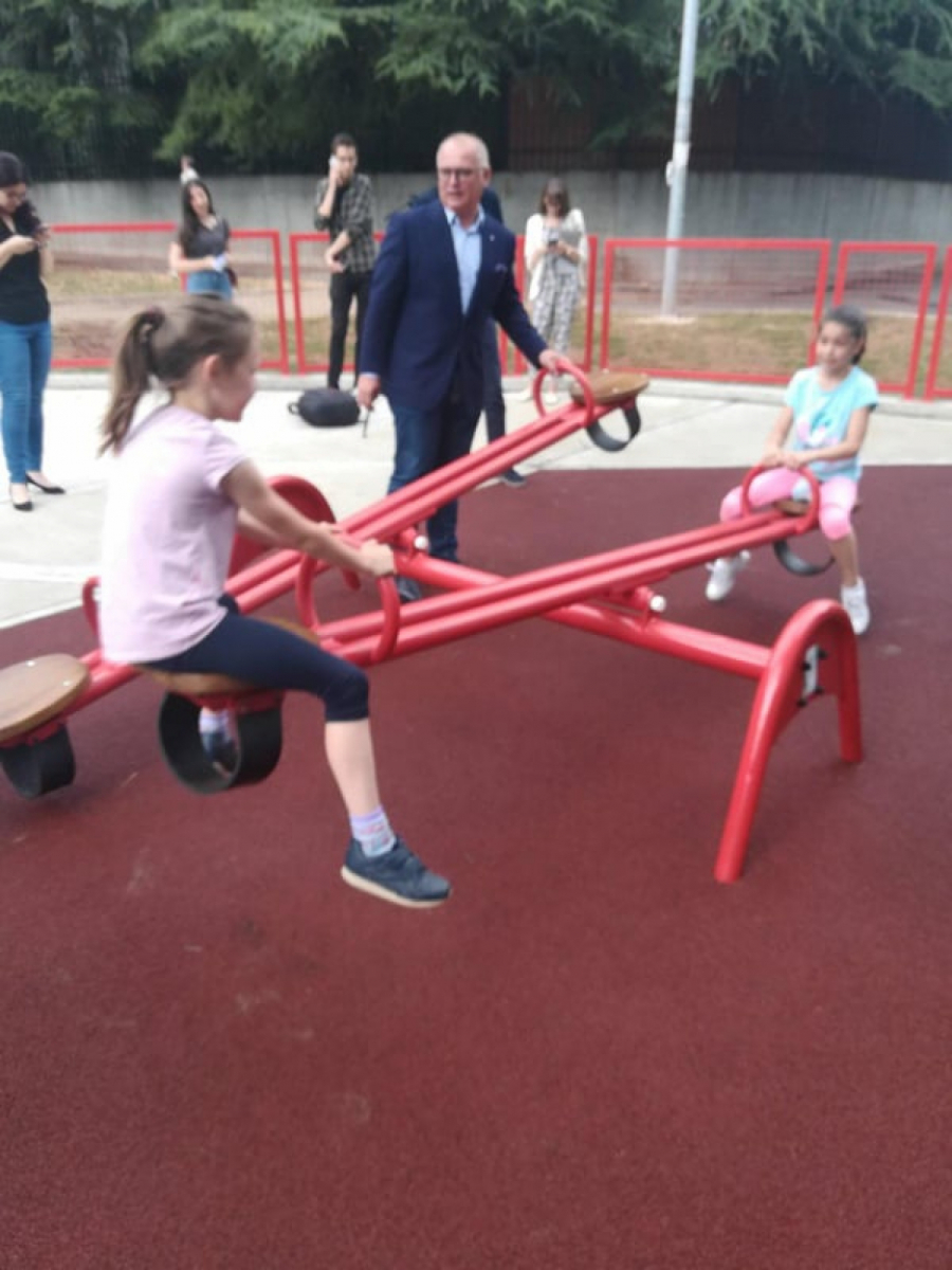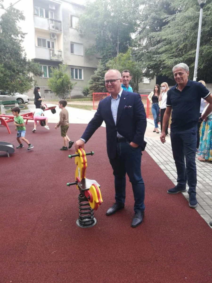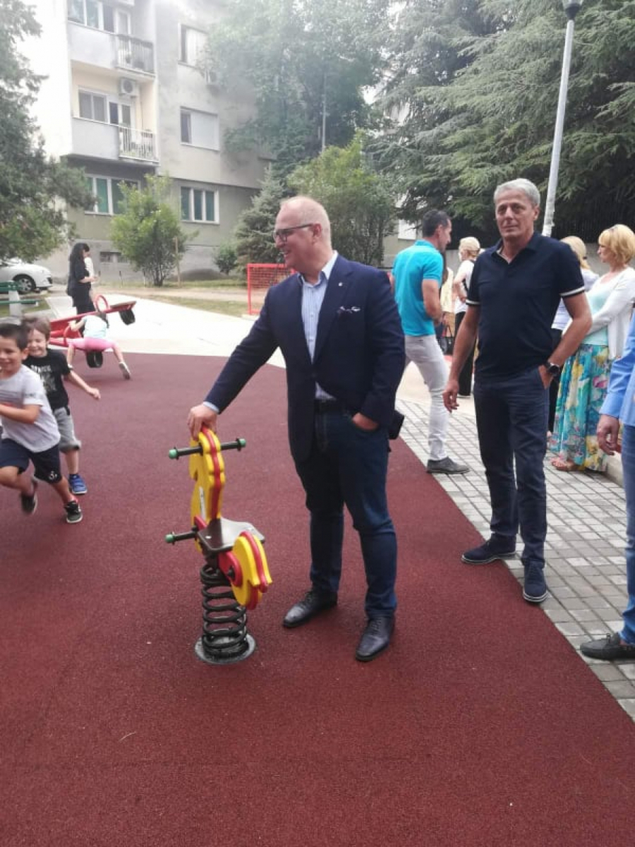 "Igralište ima stazu koja štiti decu od istrčavanja na ulicu, zaista sam srećan što je nase zelenilo ovladalo ovom tehnikom i sve što vidite iza nas je proizvedeno u Srbiji", rekao je Vesić prilikom obilaska dečijeg igrališta.