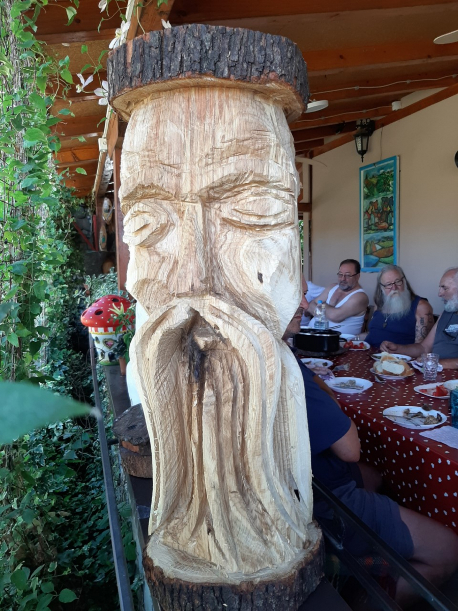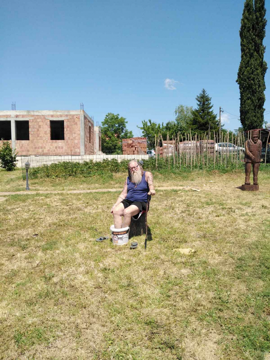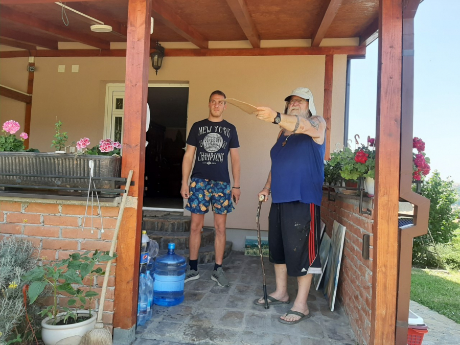 - Naslikali smo 26 radova, to je izložba, kapital. Imali smo i vajara Petra Jelića iz Republike Srpske koji je od stabla drveta, u prirodnoj veličini čoveka, napravio Srbina u opancima, sa šajkačom na glavi i još dve izuzetne skulpture. Drndao je ovde motornom testerom po ceo dan - u šali kaže istoričar umetnosti, slikar i istaknuti likovni kritičar Zdravko Vučinić i navodi da profesor sada ima njihov zaštitni znak i svojevrstan blagoslov kuće.