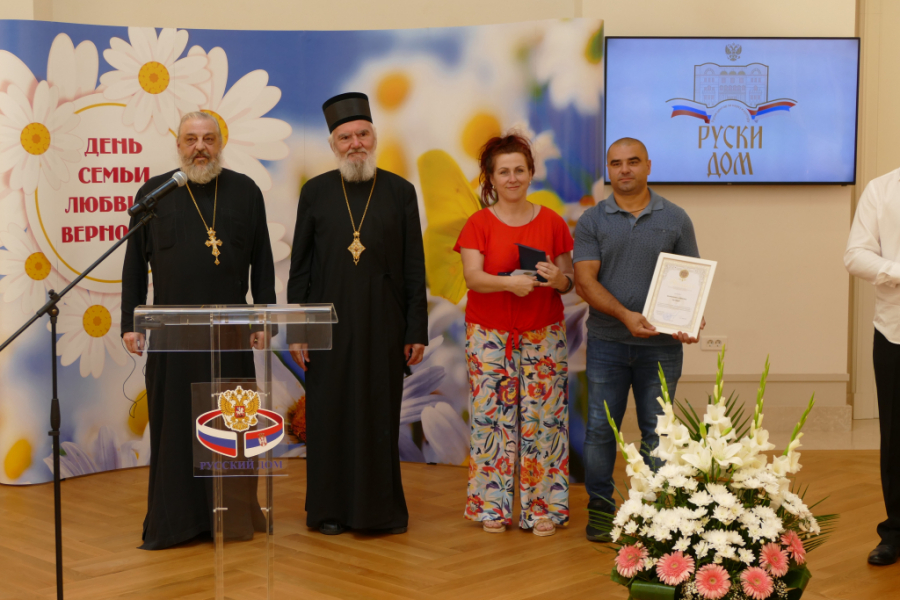 Obeležavanje praznika nastavljeno je u Ruskom domu svečanom dodelom odlikovanja supružnicima koji su u skladnom braku proveli više od 25 godina. Medalju „Za ljubav i vernost“ primilo je više od dvadeset bračnih parova. Program je obogaćen koncertom – svojevrsnim poklonom zvanicama Ruskog doma.