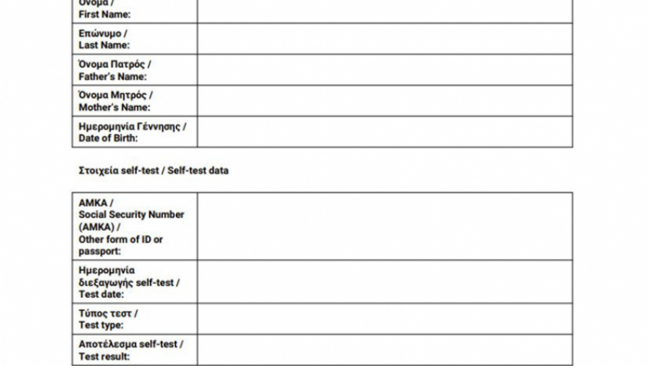 Testovi za samotestiranje dostupni su u apotekama i koštaju nekoliko evra. Formular koji se popunjava može se pronaći i na ovom sajtu, i izgleda ovako: