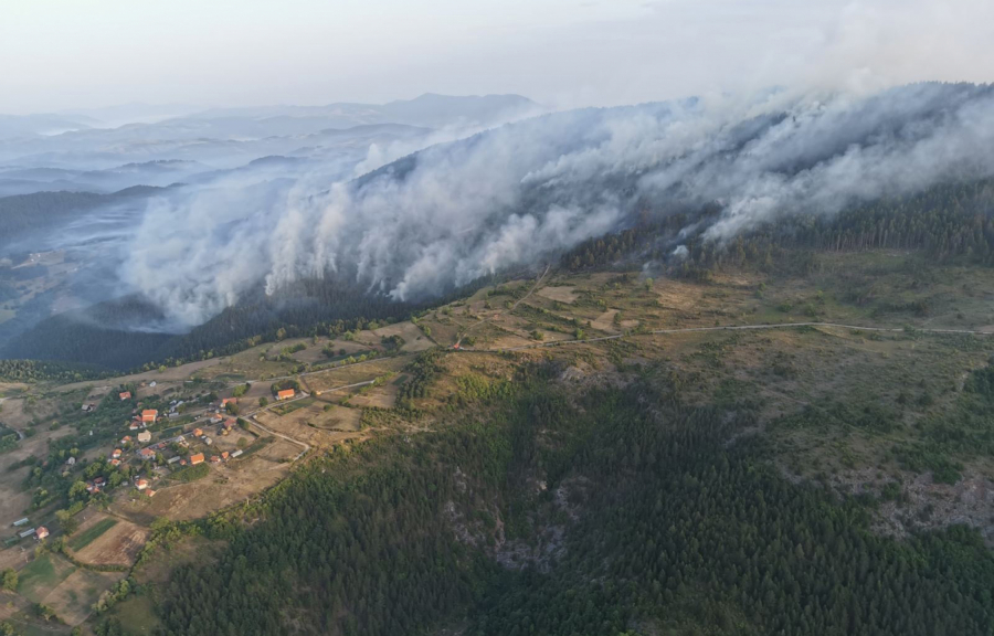Kako je istakao, nema više otvorenog plamena, ali se u popodnevnim satima može očekivati da dođe do krunskog požara, zbog čega su vatrogasci-spasioci razmešteni na tačkama koje su potencijalno opasne.