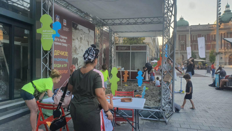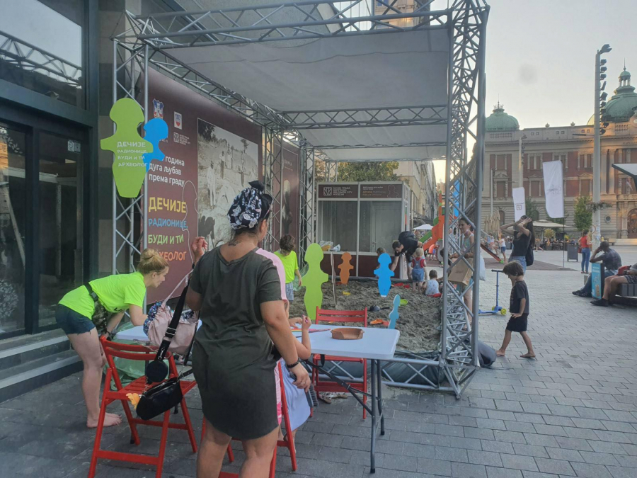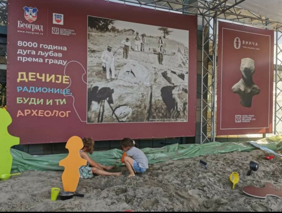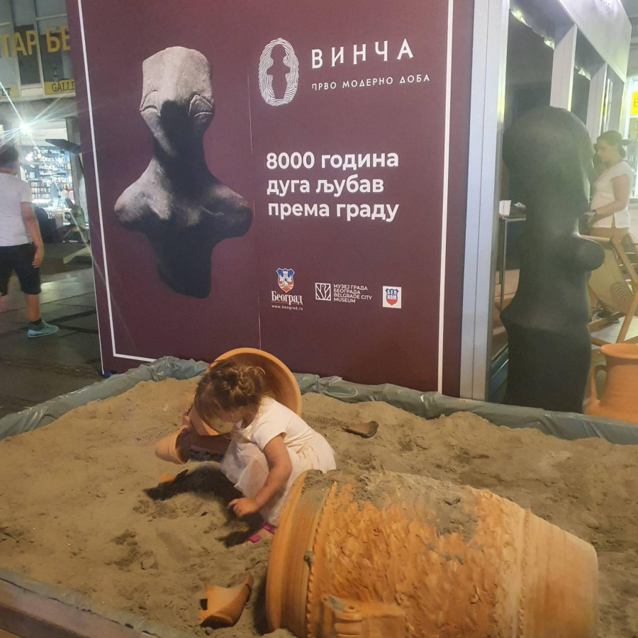 Ovog leta beogradsku istoriju predstavljamo kroz arehologiju. Kada se u Beogradu pomene argeologija prvo pomislimo na nalazište Vinča. Zato smo na Trgu Republike napravili malo arheološko nalazište za decu gde će kroz igru u pesku moći da pronađu replike figura i oruđa koje čuva naš muzej. Tako će postati mali arheolozi, ali i naučiće nešto o našoj istoriji.