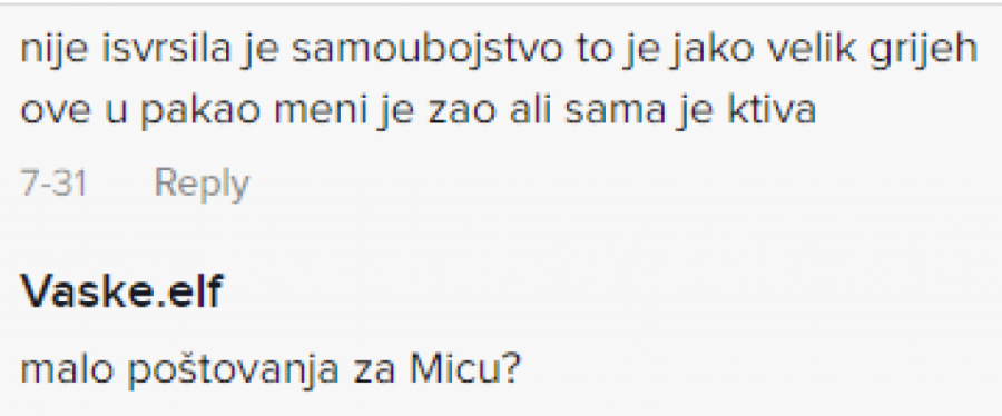 Iako je najveći broj komentara bio vezan za iskazivanje saučešća preminuloj devojci, nemali broj njih je bio krajnje nepriemeren situaciji.