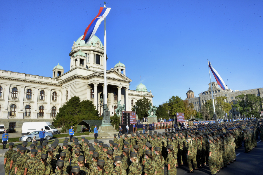 Ispred Doma Narodne skupštine Srbije u 17 časova počela je proba svečne promocije najmlađih oficira Vojske Srbije koja će biti održana sutra od 10 časova.