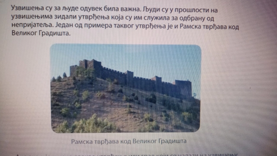 Jedan od primera utvrđenja na uzvišenjima je i Ramska tvrđava kod Velikog Gradišta, stoji u jednom udžbeniku za treći razred „Priroda i društvo“, a ispod je kao ilustracija prikazan čuveni stari grad Maglič, kod Kraljeva. Roditelji su se odmah pobunili, a učitelji su u ovome videli još jedan dokaz da su nezamenjivi.