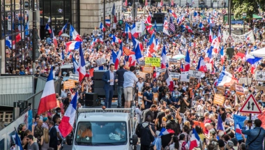 Zbog obavezne vakcinacije zdravstvenih radnika i uvodjenja kovid propusnica za ulazak u restorane i druga mesta, stotine hiljada Francuza protestuje širom zemlje svakog vikenda od sredine jula kada je francuski predsednik Emanuel Makron najavio nove mere.