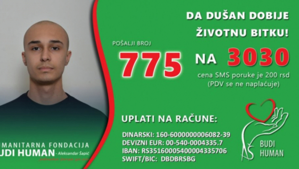 - Ćao svima, evo nas na Studentskom trgu. Kao što znate, moja najveća želja je da se izlečim i upišem fakultet. Svako ko želi da pomogne da ostvarim svoje ciljeve neka upiše 775 na 3030.