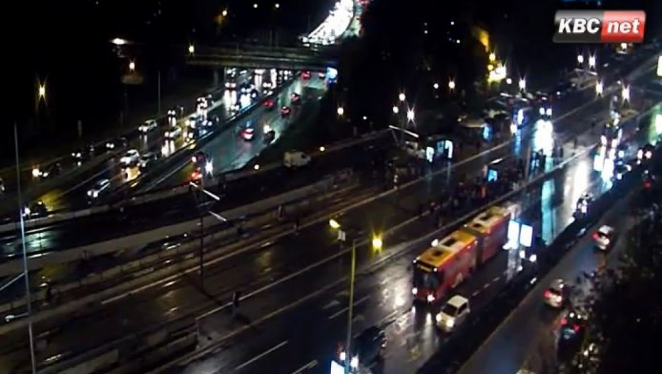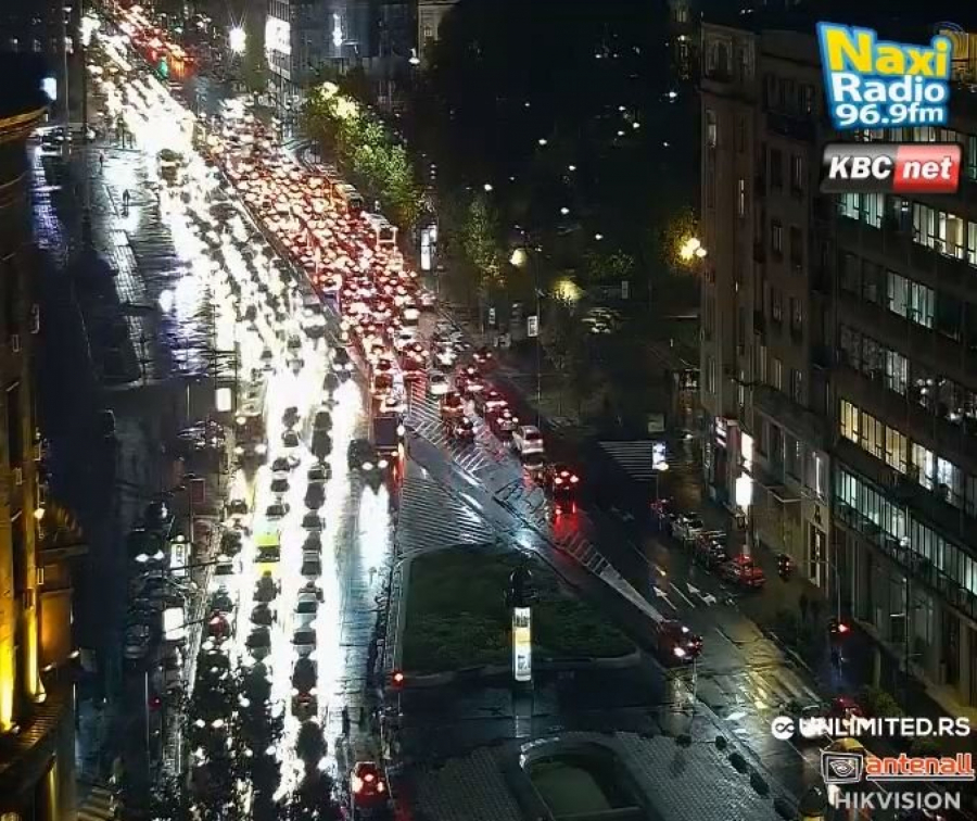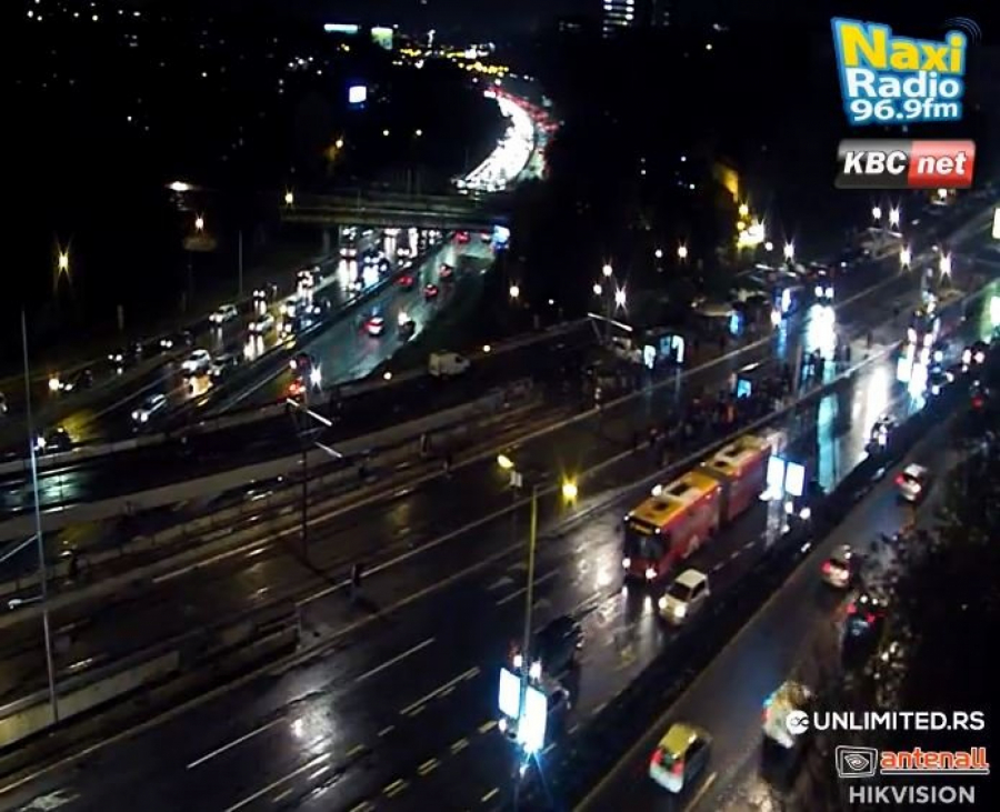 I na Slaviji je saobraćaj u potpunom prekidu, na Trgu Nikole Pašića u oba smera, na Autokomandi i na auto-putu u novobeogradskom delu.