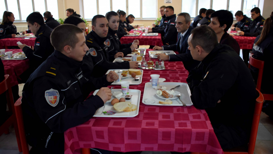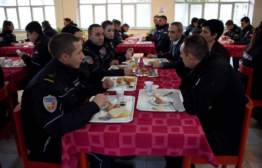 Vulin je jutros obišao Kriminalističko-policijski univerzitet, gde su u toku radovi na renoviranju pojedinih prostorija, i doručkovao sa studentima nakon što je na njegovu inicijativu promenjen jelovnik i poboljšana ishrana za studente.