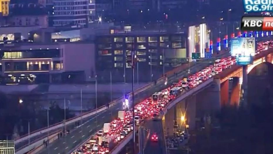 Kolona vozila počela je postepeno da se kreće, a zbog ranije blokade stvorila se velika gužva.