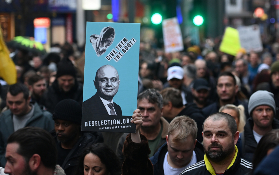 Oni su prošetali ulicom Vajthol i prošli pored Dauning strita, gde se nalaze sedište britanske vlade, i tamo bacali konzerve sa pivom i baklje na policiju.