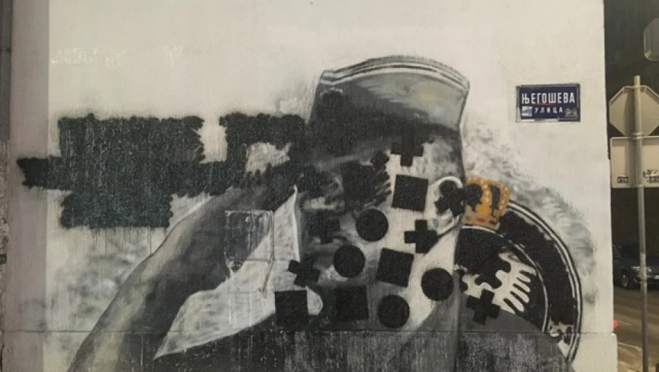 Nije poznato ko je sa crnim sprejem crtao krsteve i druge oblike preko lika Ratka Mladića.