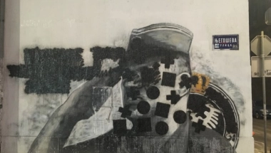 Ovaj mural je već pretrpeo određena oštećenja, kada je na njega prethodno bačena crna farba, a zatim i proliven kreč.