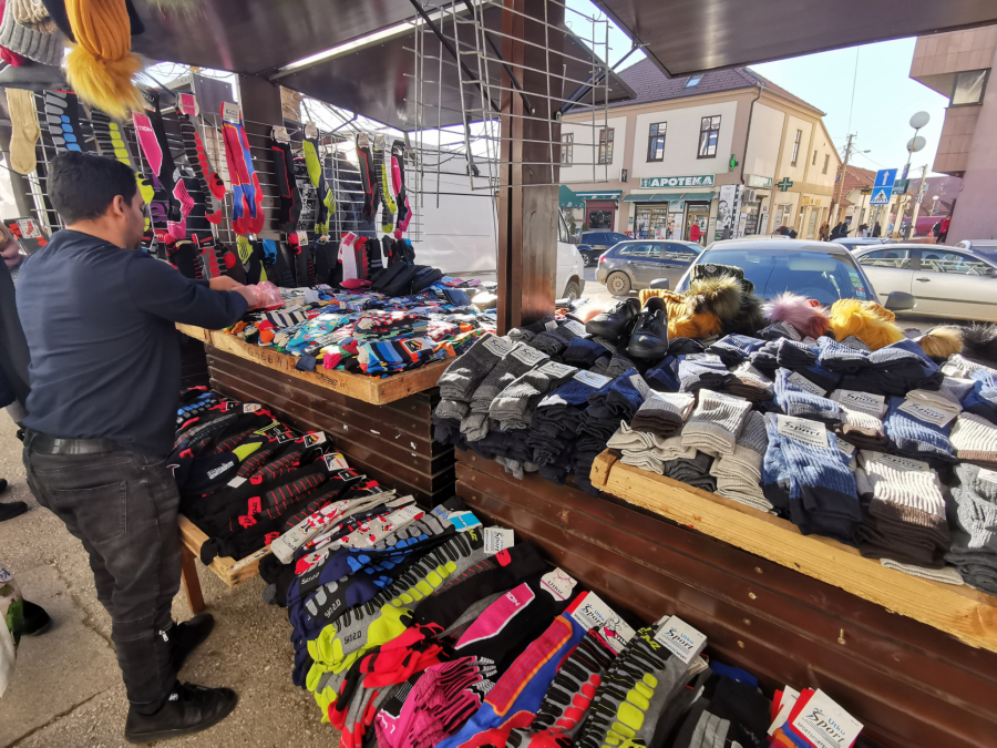 - Čarape ubedljivo najbolje prolaze, a mi se trudimo da imamo najkvalitetnije. Sada je tri para za 200 dinara, materijali za zimu su deblji i onda mora više da košta. Ipak, mušterije kad znaju da valja ne pitaju za ceno - rekao je Gradimir.