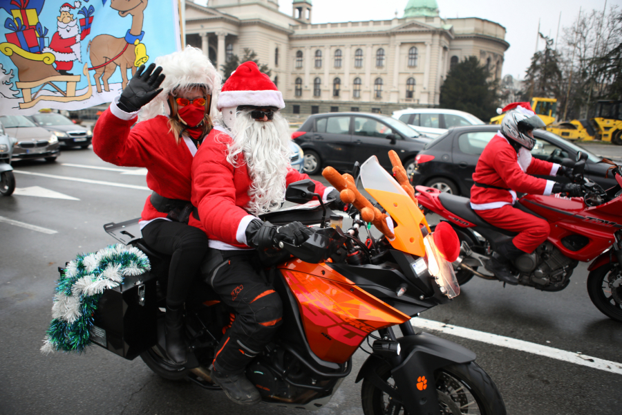 Motociklisti velikog srca okupili su se ispred Gradske skupštine u Beogradu kako bi odneli novogodišnje paketiće štićenicima Doma za decu i omladinu ometenu u mentalnom razvoju u Sremčici.