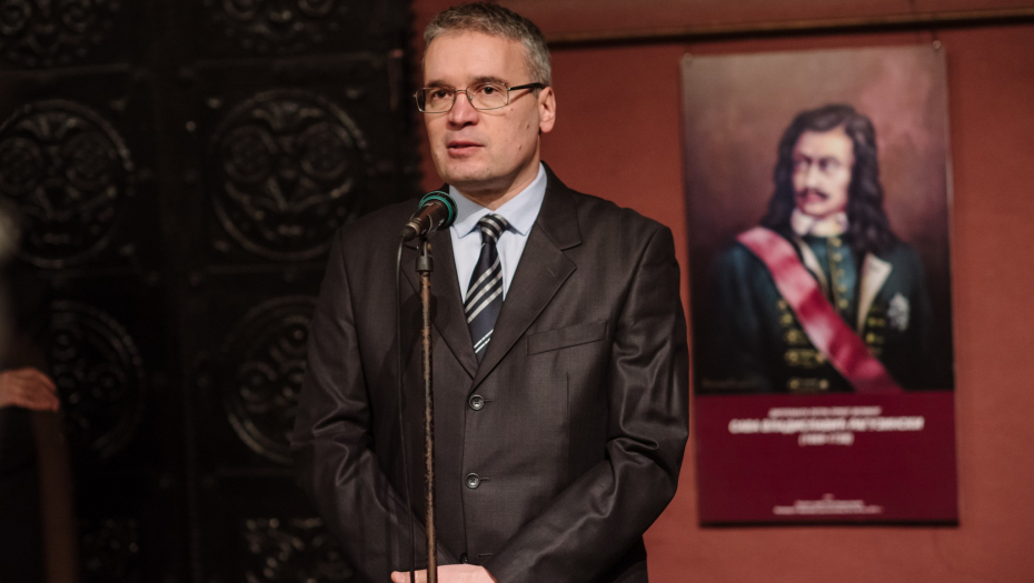 Na otvaranju izložbe o grofu Savi Vladislaviću Raguzinskom, diplomati Petra I Velikog, u vestibilu Gradske kuće, govorili su koautor izložbe Branko Vukomanović i pomoćnik pokrajinskog sekretara za kulturno nasleđe, dr Milan Micić, koji je i otvorio izložbu.
