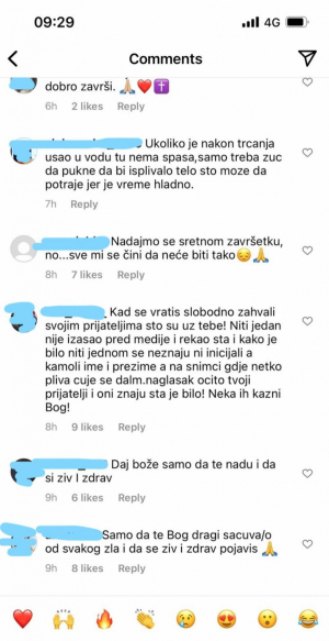 Ima i komentara "samo da si živ", "nadamo se srećnom kraju", "daj bože da te nađu i da si živ i zdrav".