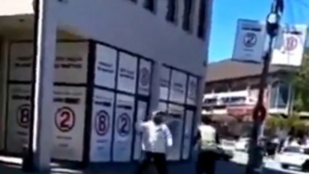 Tu se nalazio i policajac koji je smirivao muškarca i govorio mu "Ajde, dosta", ali ga on nije slušao.