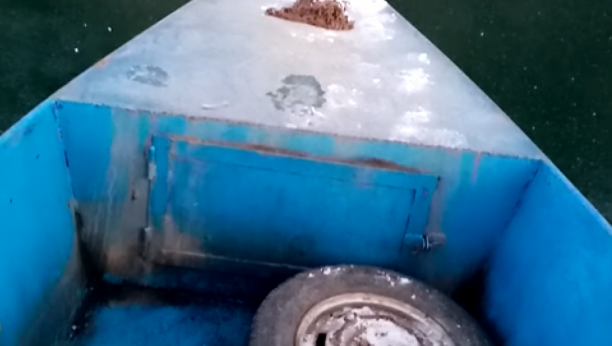 Vozi ih prema navodima sa društvenih mreža uglavnom majka koja najpre mora da razbije led na površini jezera.