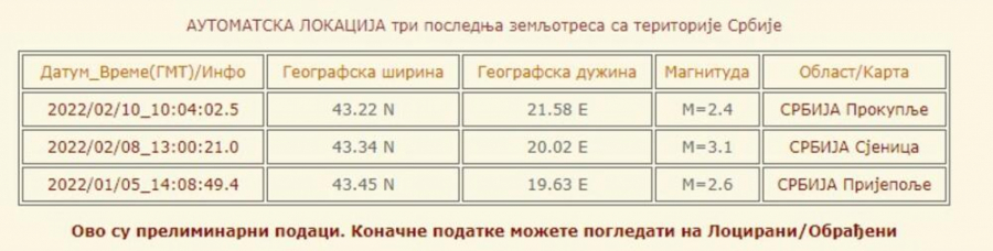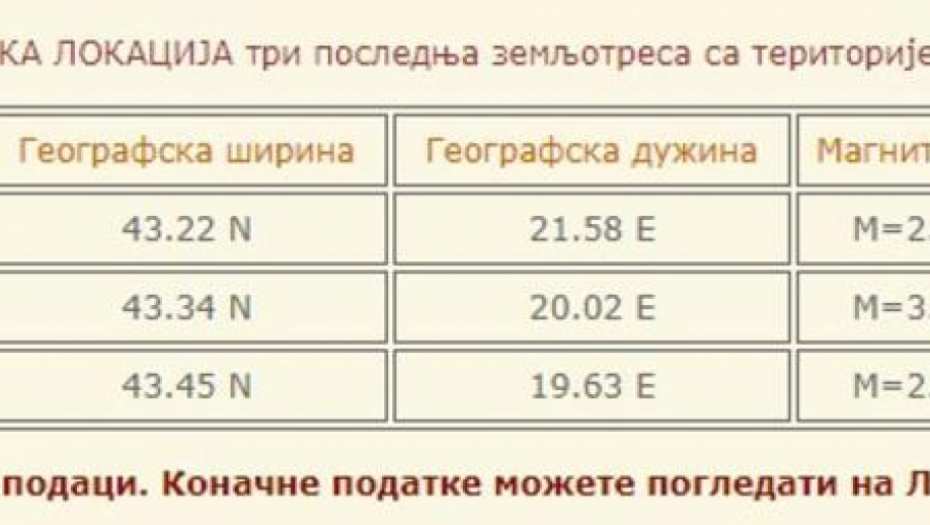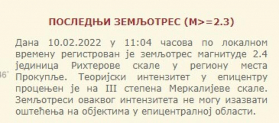Printscreen/ Seizmološki zavod Srbije