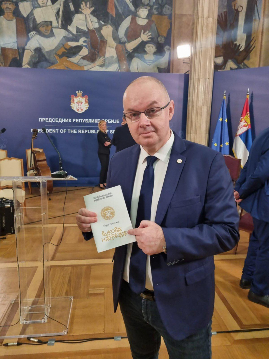-Skoro šest punih decenija imenom Vuka Кaradžića ovenčavaju se dobitnici nagrade koju dodeljuje Кulturno-prosvetna zajednica Srbije. U nekim budućim vremenima, kada istraživači prošlosti budu tragali za biografijama i delom znamenitih ljudi našeg doba, o svemu što je predmet njihovog interesovanja moći će da se obaveste čitanjem spiska imena ljudi i ustanova kojima je, tokom svih ovih godina, dodenjivana Vukova nagrada.Zato je Vukova nagrada zalog budućnosti Srbije i srpskog nacionalnog prostora. Ona je živo svedočanstvo vitalnosti umetnosti i nauke našeg vremena. Ova nagrada je pokazatelj neiscrpnog kulturnog bogatstva moderne Srbije, oličenog u delima dobitnika, istakla je pomoćnik ministra.