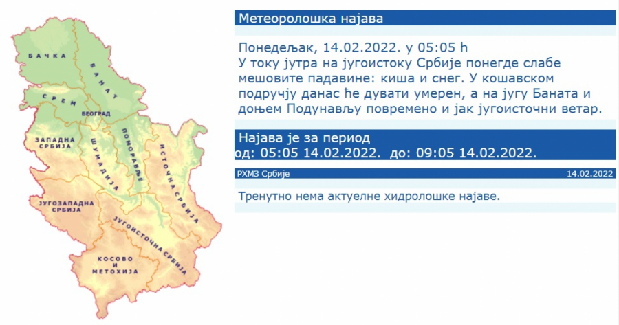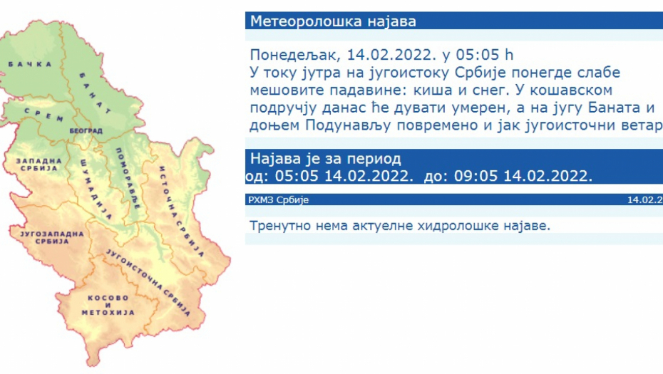 U galeriji pogledajte detaljnu prognozu RHMZ za danas: