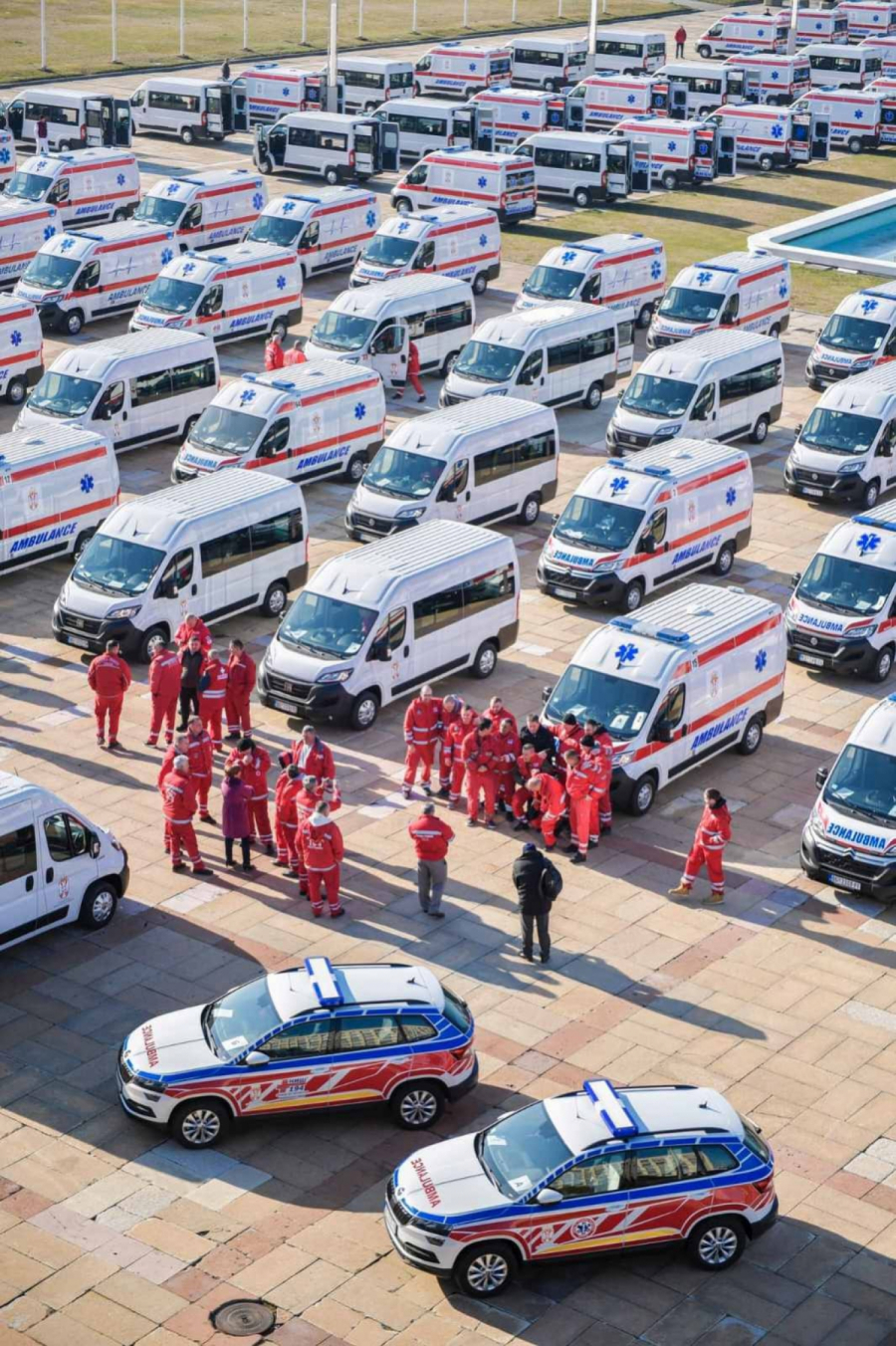 U okviru nabavke vrednosti više od 15 miliona evra, nalazi se pet tipova sanitetskih vozila: za urgentne ekipe sa osnovnom opremom (110 sanitetskih vozila), kompletno opremljeno vozilo(osnovna oprema, aspirator i defibrilator - 95 sanitetskih vozila), te sanitetsko vozilo za urgentne ekipe sa osnovnom opremom, asiratorom, defibrilatorom i respiratorom (10 sanitetskih vozila), zatim vozila za prevoz pacijenata sa hendikepom, odnosno vozila sa rampom za uvoz pacijenata (19 vozila) i vozila za prevoz pacijenata na hemodijalizu (95 vozila).